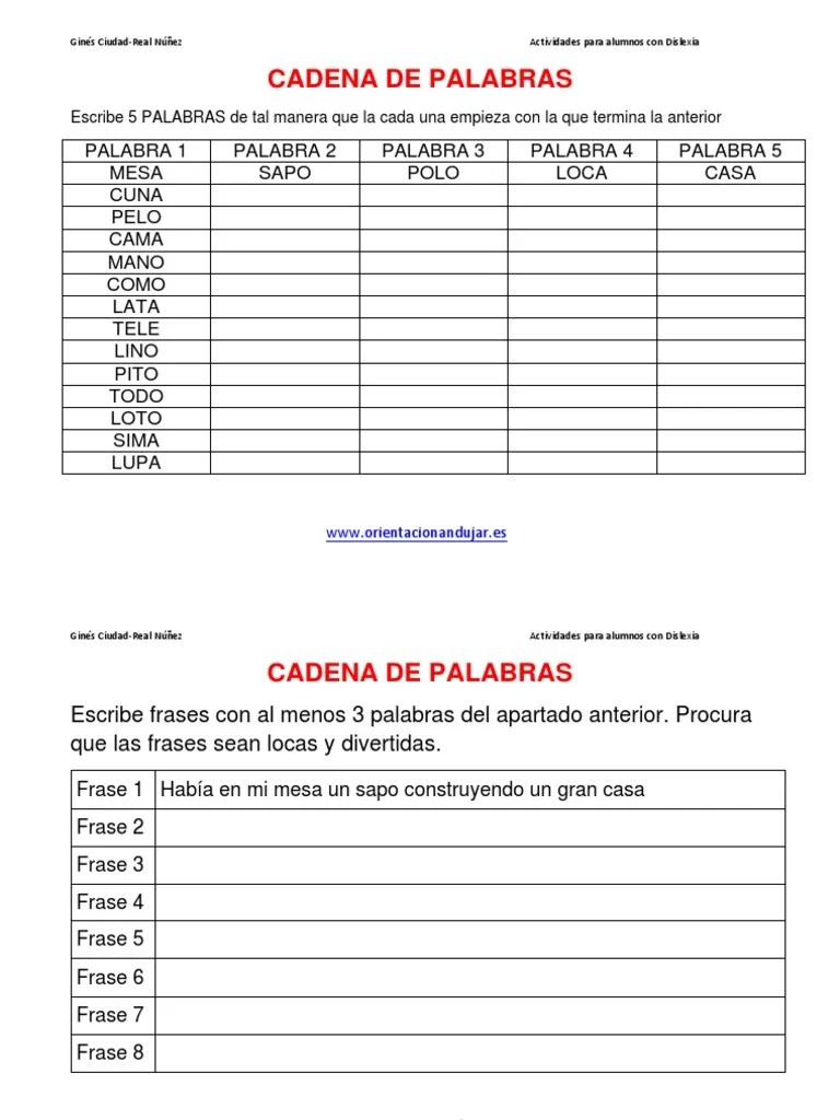 Cadena De Palabras Ejemplos - Pin En Dislexia